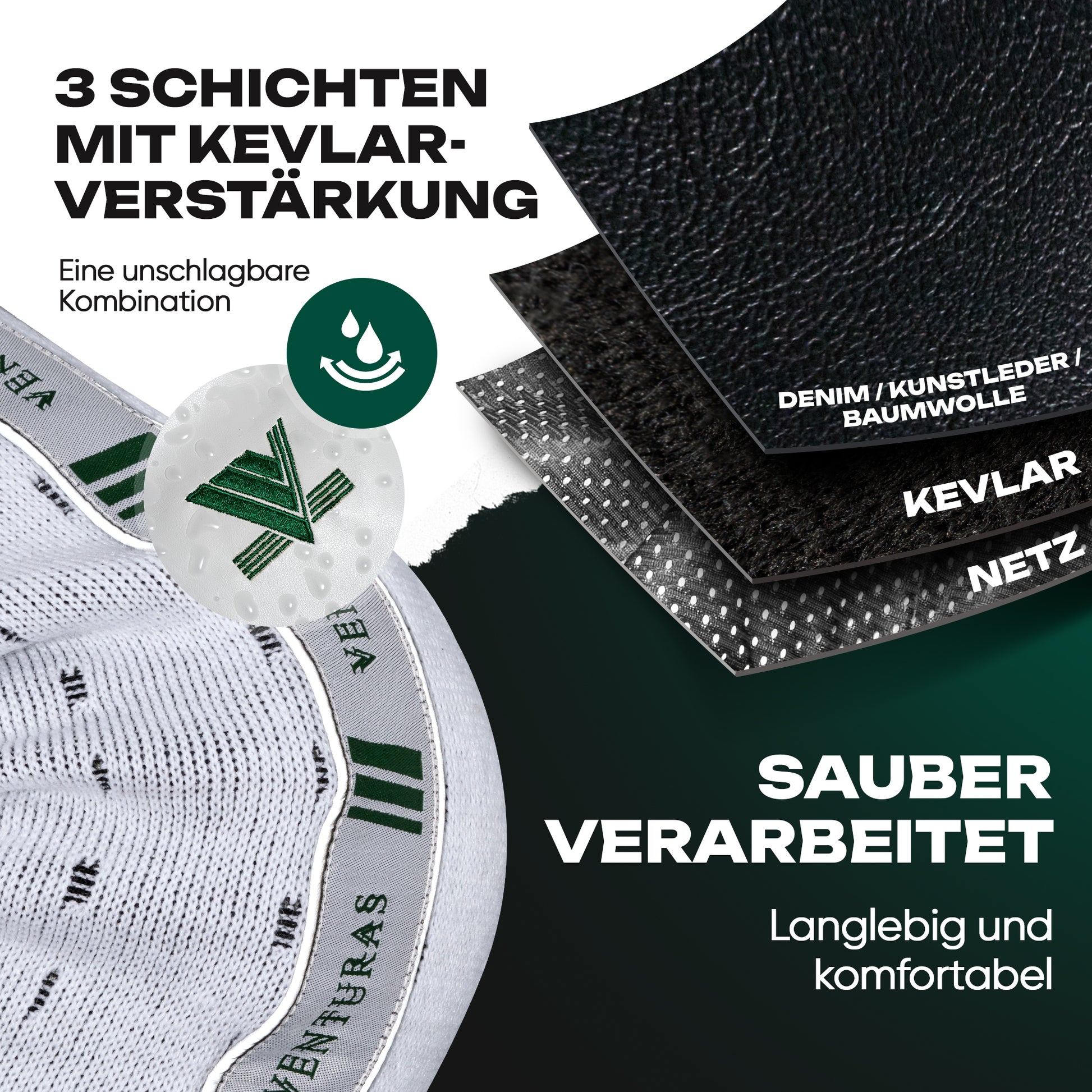 Unsere Kleidung ist mit Reflektoren an Armen und Beinen ausgestattet, um die Sichtbarkeit bei Nacht zu verbessern. Zusätzlich sind Protektoren an wichtigen Stellen angebracht. Deine Jacke verfügt über Protektoren an Schultern, Ellbogen und Rücken, während die Cargo-Hose Protektoren an Hüften und Knien bietet.